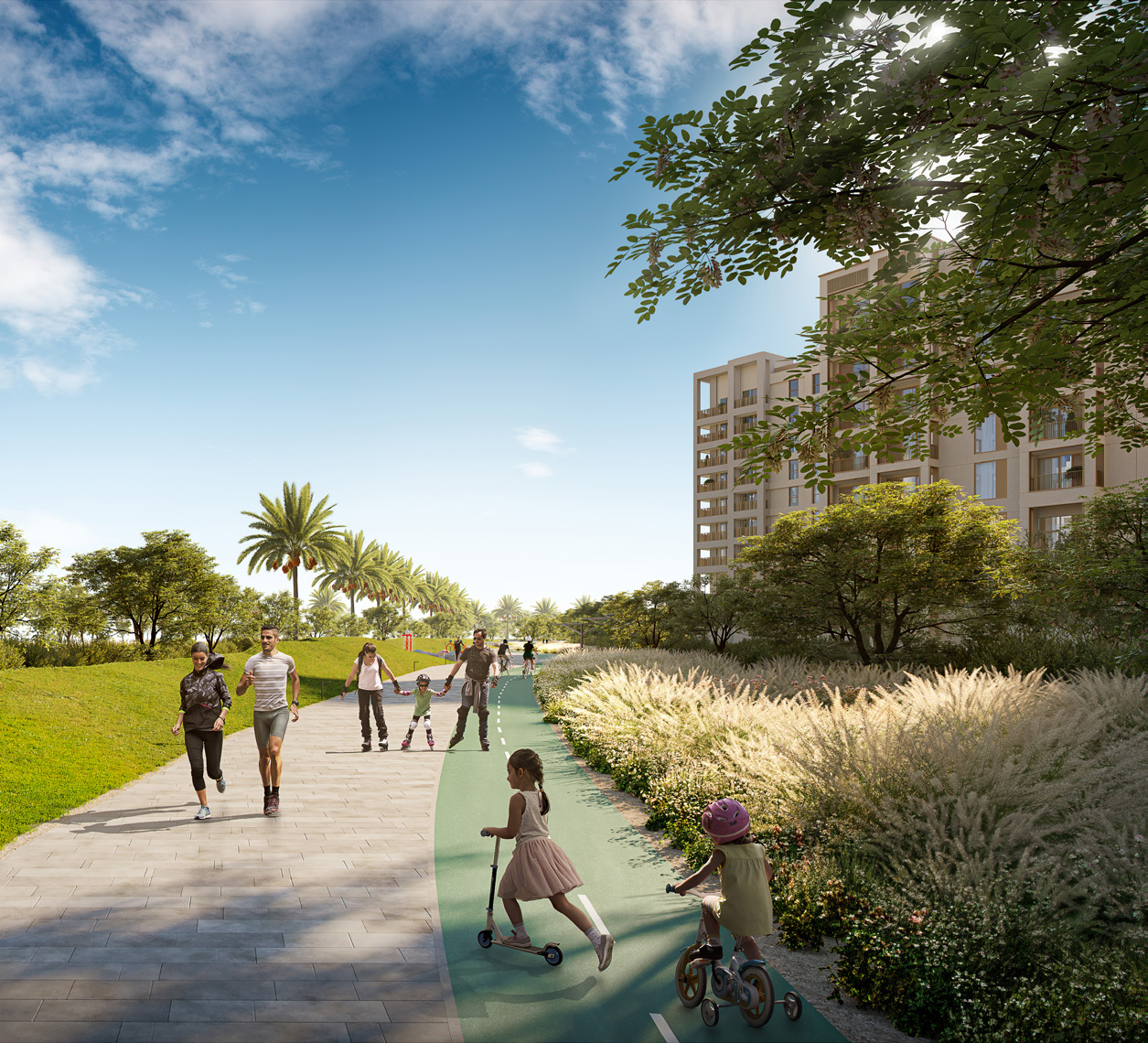 Designed to promote well-being and connection, Mangrove offers an array of premium amenities. Residents can enjoy an infinity pool, barbecue areas, and outdoor play zones, while lush courtyards and landscaped walkways create a peaceful setting. A private fitness center and two vibrant town squares provide space for both relaxation and community gatherings, ensuring a dynamic yet tranquil lifestyle.