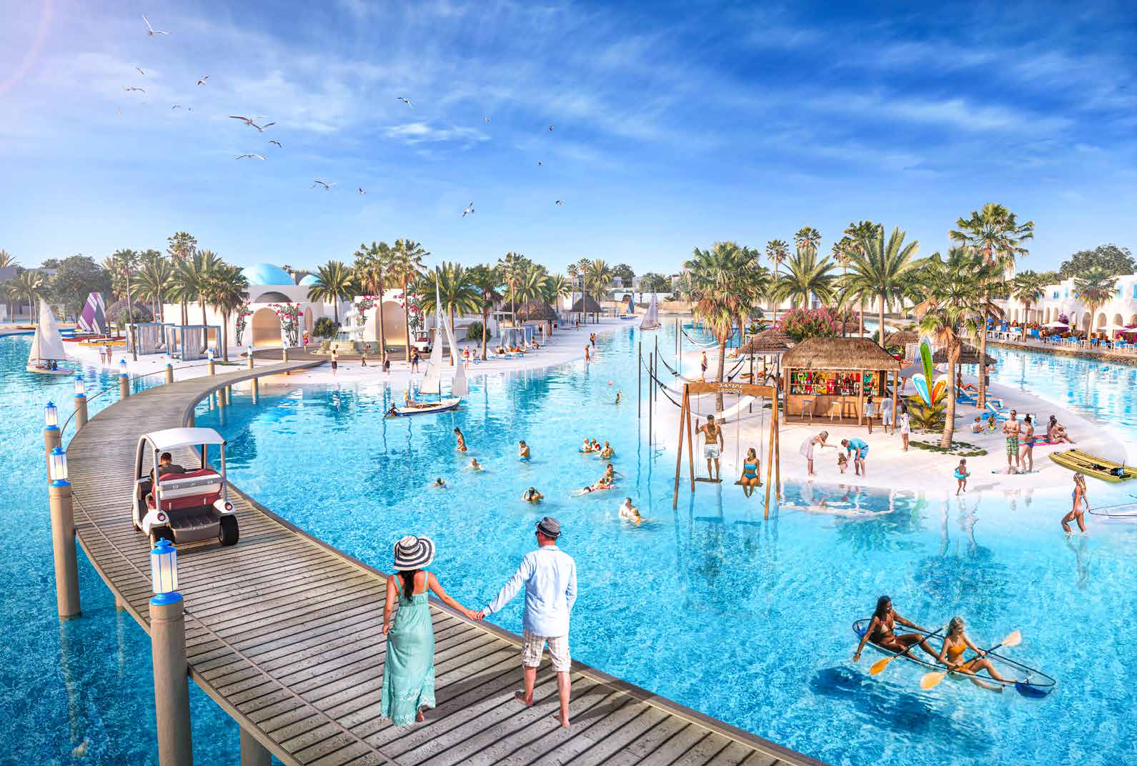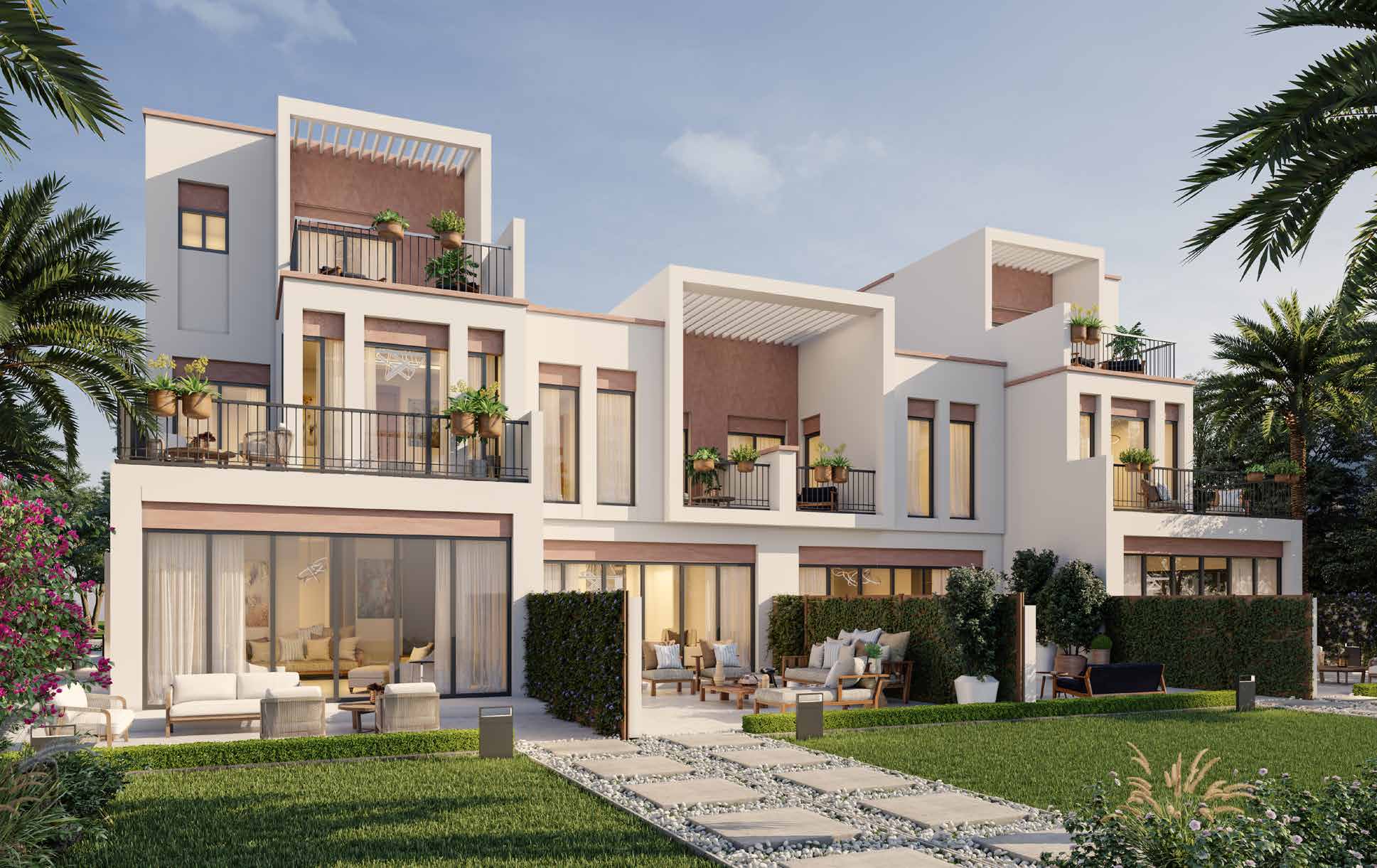 The community includes a serenity garden adorned with traditional rugs and carpets, a botanical space, and a cactus garden inspired by the Jardin Majorelle in Marrakesh. Move mindfully at the yoga area, soak in the views at the observation deck and let every day feel like a luxurious staycation.
