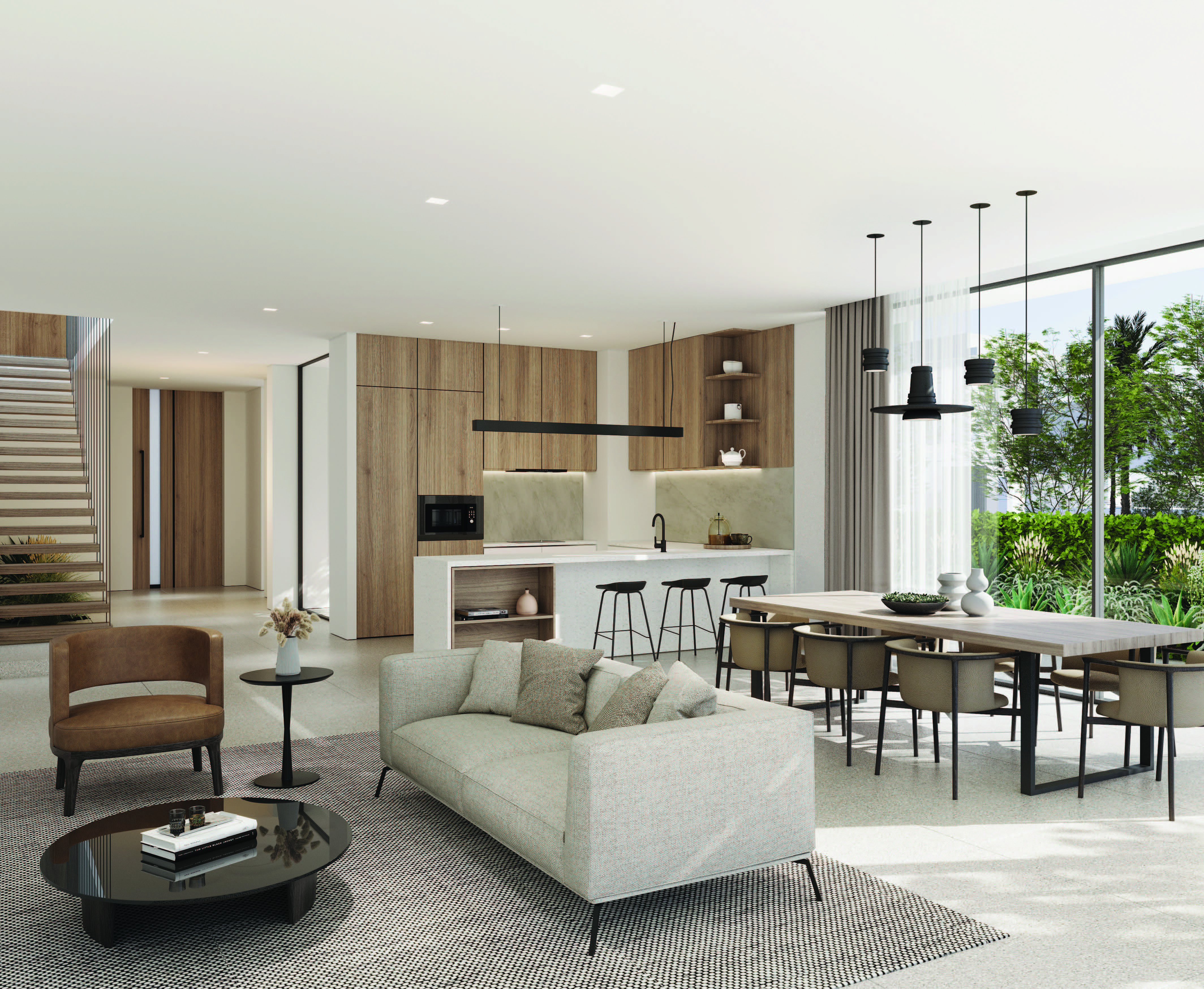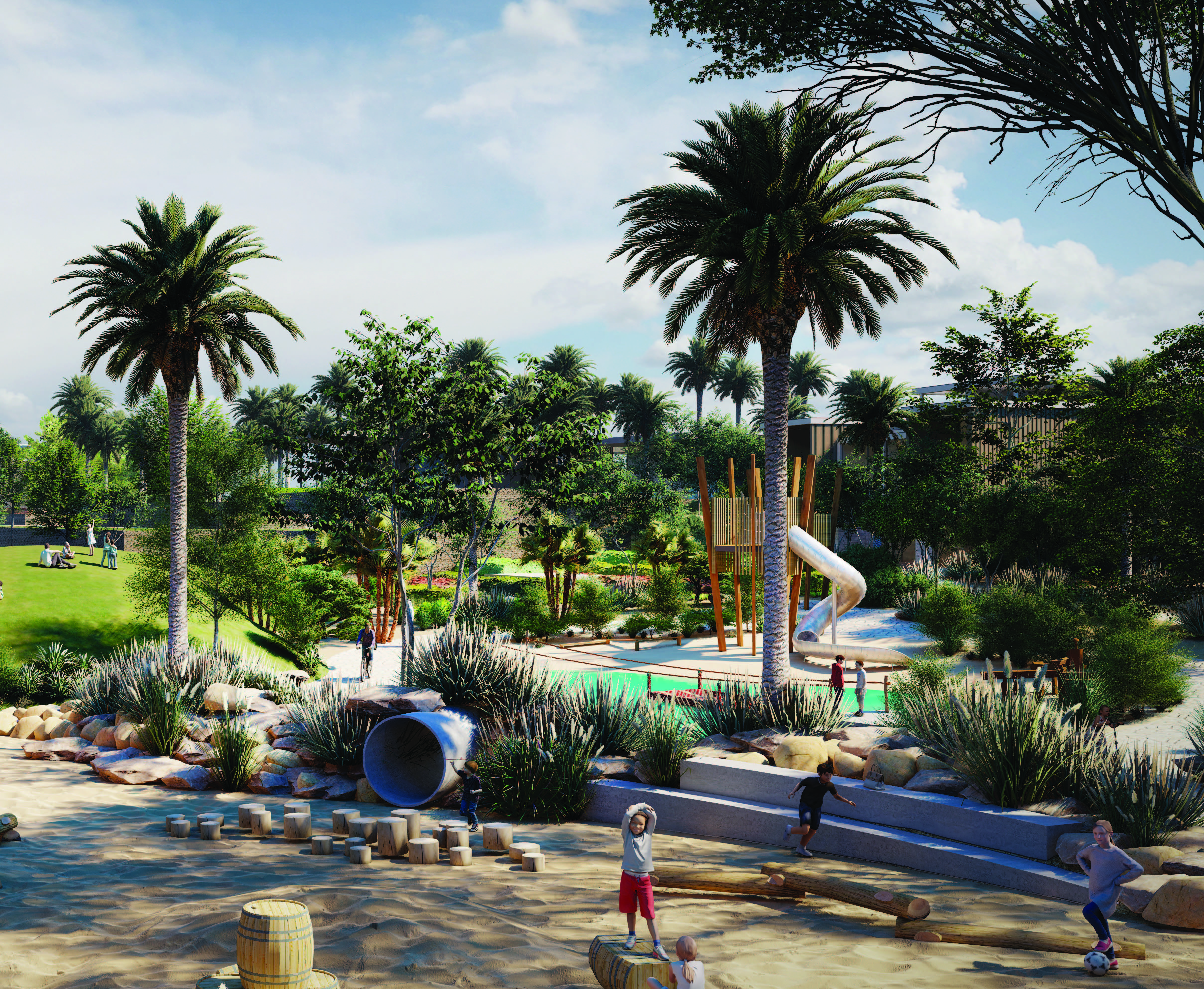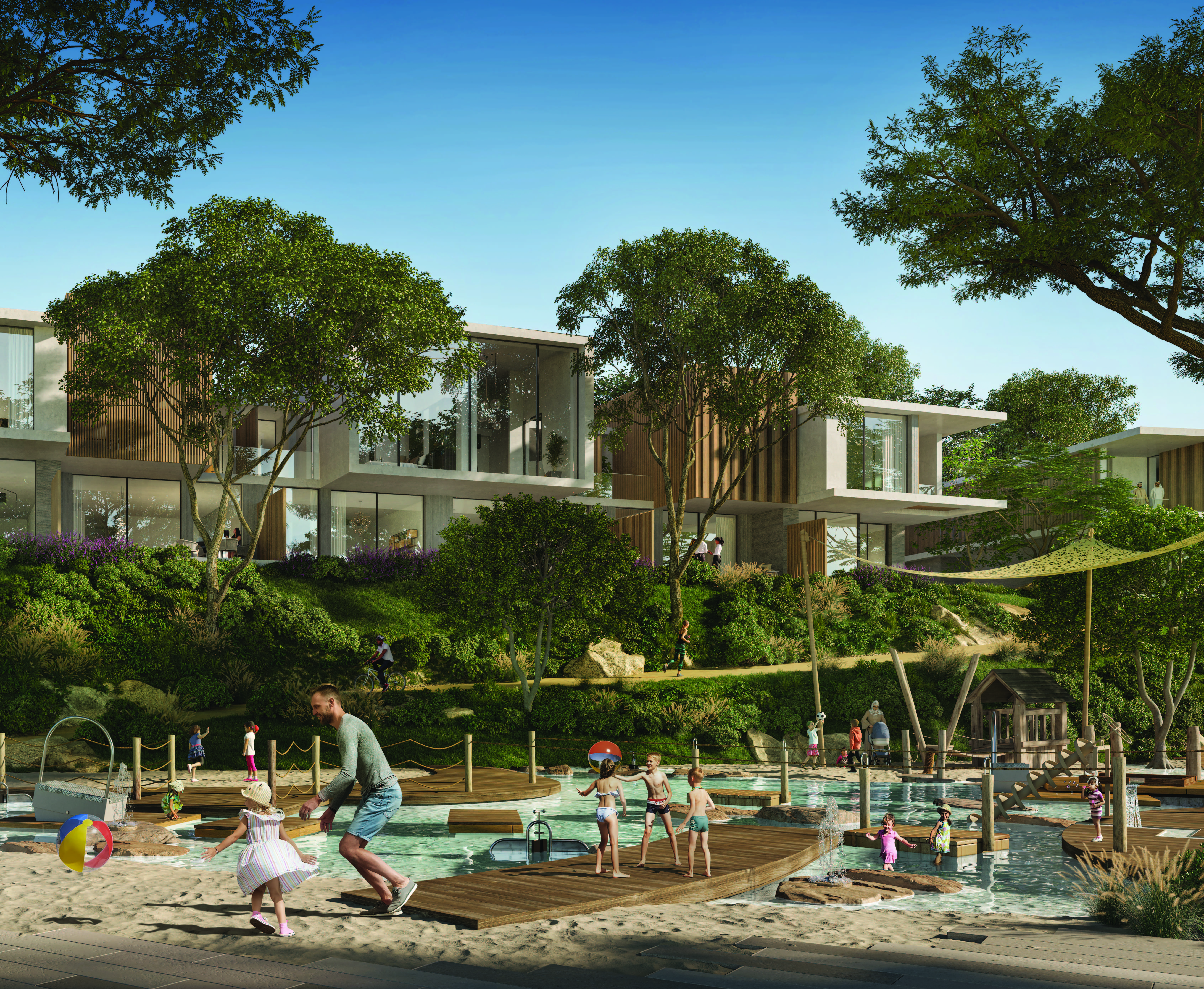 The setting is what makes the difference here – by honouring the area’s natural topography, the community benefits from its own microclimate with a natural buffer against noise and dust. The area is also highly accessible with pedestrian walkways and dedicated paths for bikes and e-scooters.